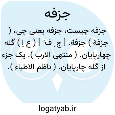 ( جزفة ) جزفة. [ ج ِ ف َ ] ( ع اِ ) گله چهارپایان. ( منتهی الارب ). یک جزء از گله چارپایان. ( ناظم الاطباء ). پاره ای از چارپا. ( از شرح قاموس ). پاره ای از گوسفند. جَزفَة. ( از متن اللغة ).
