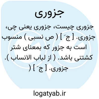 جزوری. [ ج َ ] ( ص نسبی ) منسوب است به جزور که بمعنای شتر کشتنی باشد. ( از لباب الانساب ).