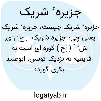 جزیره شریک. [ ج َ رَ ی ِ ش َ ] ( اِخ ) کوره ای است به افریقیه به نزدیک تونس. ابوعبید بکری گوید: منسوب است به شریک عبسی که عامل آنجا بود.قصبه این ناحیه شهر بزرگی است موسوم به باشو. این شهر آبادان و دارای جامع و حمامهای متعدد و بازارهای معمور بود و باره احمدبن عیسی قائم در آنجا است. ( از معجم البلدان ). و رجوع به قاموس الاعلام ترکی شود.