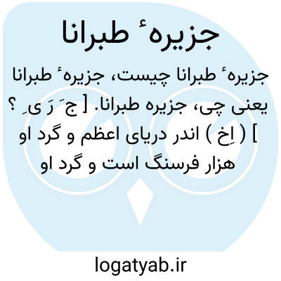 جزیره طبرانا. [ ج َ رَ ی ِ ؟ ] ( اِخ ) اندر دریای اعظم و گرد او هزار فرسنگ است و گرد او پنجاه ونه جزیره است بزرگ و آبادان و ویران و اندرو شهرها و دههای بسیار است و اندرو رودها و کوهها بسیار است و اندرو معدنهای یاقوت است از همه رنگ و این جزیره برابر سرحد میان چینستان و هندوستان است. ( از حدود العالم چ دانشگاه ص 19 ).