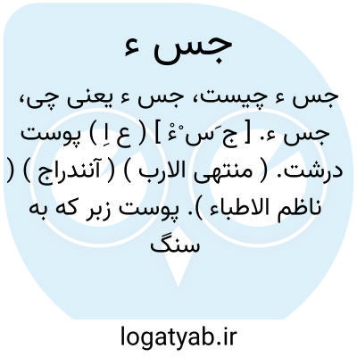 جس ء. [ ج َس ْءْ ] ( ع اِ ) پوست درشت. ( منتهی الارب ) ( آنندراج ) ( ناظم الاطباء ). پوست زبر که به سنگ ریزه ماند. ( از متن اللغة ). || آب بسته منجمد. ( منتهی الارب ) ( آنندراج ) ( از اقرب الموارد ) ( ناظم الاطباء ) ( از متن اللغة ). || ( اِمص ) درشتی و صلابت. ( از متن اللغة ). || ( مص ) درشت و سخت شدن دست از کار. ( آنندراج ) ( منتهی الارب ) ( از ناظم الاطباء ). درشت شدن پوست دست از کار. ( از اقرب الموارد ). جُسْاءَة. جُسوء. ( ناظم الاطباء ) ( منتهی الارب ). || سخت گردیدن چیزی. ( آنندراج ) ( منتهی الارب ) ( ناظم الاطباء ).