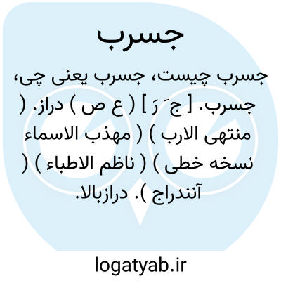 لغت نامه دهخدا جسرب. [ ج َ رَ ] ( ع ص ) دراز. ( منتهی الارب ) ( مهذب الاسماء نسخه خطی ) ( ناظم الاطباء ) ( آنندراج ). درازبالا. ( یادداشت مؤلف ).