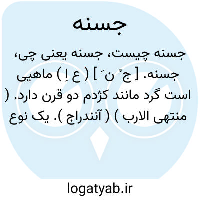 جسنه. [ ج ُ ن َ ] ( ع اِ ) ماهیی است گرد مانند کژدم دو قرن دارد. ( منتهی الارب ) ( آنندراج ). یک نوع ماهی گردی که مانند کژدم دو شاخ دارد. ( از ناظم الاطباء ).