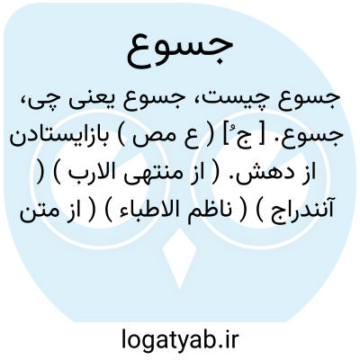 جسوع. [ ج ُ] ( ع مص ) بازایستادن از دهش. ( از منتهی الارب ) ( آنندراج ) ( ناظم الاطباء ) ( از متن اللغه ). || برآوردن نشخوار به دهان. ( منتهی الارب ) ( از متن اللغة ). || بازایستادن از کلام. ( از متن اللغه ).