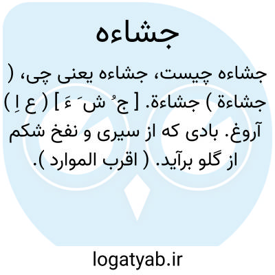 ( جشاءة ) جشاءة. [ ج ُ ش َ ءَ ] ( ع اِ ) آروغ. بادی که از سیری و نفخ شکم از گلو برآید. ( اقرب الموارد ).