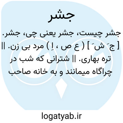 جشر. [ ج َ ش َ ] ( ع ص، اِ ) مرد بی زن. || تره بهاری. || شترانی که شب در چراگاه میمانند و به خانه صاحب برنمی گردند. || مردمی که شب با شتران در چراگاه میمانند و به خانه برنمی گردند. || درشتیی است در آواز. خشونتی است که در سینه عارض شود. ( منتهی الارب ).