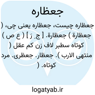 ( جعظارة ) جعظارة. [ ج ِ رَ ] ( ع ص ) کوتاه سطبر لاف زن کم عقل ( منتهی الارب ). جعظار. جعظری. مرد کوتاه. ( مهذب الاسماء ).
