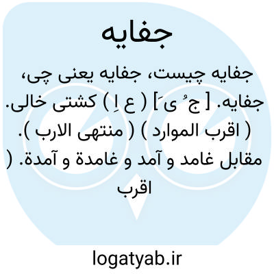 لغت نامه دهخدا جفایه. [ ج ُ ی َ] ( ع اِ ) کشتی خالی. ( اقرب الموارد ) ( منتهی الارب ). مقابل غامد و آمد و غامدة و آمدة. ( اقرب الموارد ).