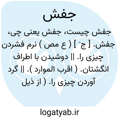 جفش. [ ج َ ] ( ع مص ) نرم فشردن چیزی را. || دوشیدن با اطراف انگشتان. ( اقرب الموارد ). || گرد آوردن چیزی را. ( از ذیل اقرب الموارد ).