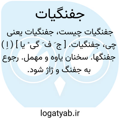 جفنگیات. [ ج َ ف َ گی ْ یا ] ( اِ ) جفنگها. سخنان یاوه و مهمل. رجوع به جفنگ و ژاژ شود.