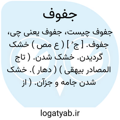 جفوف. [ ج ُ ] ( ع مص ) خشک گردیدن. خشک شدن. ( تاج المصادر بیهقی ) ( دهار ). خشک شدن جامه و جزآن. ( از اقرب الموارد ). جَفاف. رجوع به جفاف شود.