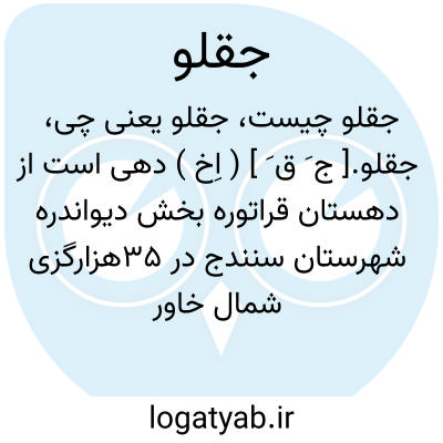 جقلو.[ ج َ ق َ ] ( اِخ ) دهی است از دهستان قراتوره بخش دیواندره شهرستان سنندج در 35هزارگزی شمال خاور دیواندره. کنار راه و رودخانه ول کشتی. کوهستانی و سردسیر است و سکنه آن 80 تن اند. آب آن از چشمه و محصول آن غلات و حبوب و لبنیات و توتون و پشم و شغل اهالی زراعت و گله داری است. ( از فرهنگ جغرافیایی ایران ج 5 ).