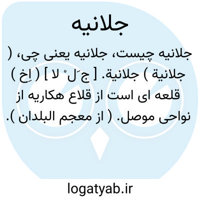 لغت نامه دهخدا ( جلانیة ) جلانیة. [ ج َل ْ لا ] ( اِخ ) قلعه ای است از قلاع هکاریه از نواحی موصل. ( از معجم البلدان ).
