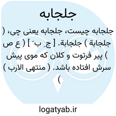 ( جلجابة ) جلجابة. [ ج ِ ب َ ] ( ع ص ) پیر فرتوت و کلان که موی پیش سرش افتاده باشد. ( منتهی الارب ) ( آنندراج ).