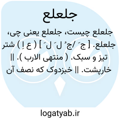 جلعلع. [ ج َ /ج ُ ل َ ل َ ] ( ع اِ ) شتر تیز و سبک. ( منتهی الارب ). || خارپشت. || خبزدوک که نصف آن حیوان باشد و نصف آن هنوز گل باشد. ( از اقرب الموارد )( منتهی الارب ). || کفتار. ( منتهی الارب ).