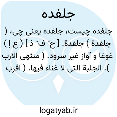 ( جلفدة ) جلفدة. [ ج َ ف َ دَ ] ( ع اِ ) غوغا و آواز غیر سرود. ( منتهی الارب ). الجلبة التی لا غناء فیها. ( اقرب الموارد ).