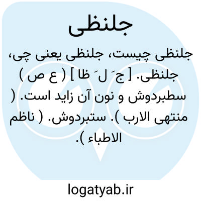 جلنظی. [ ج َ ل َ ظا ] ( ع ص ) سطبردوش و نون آن زاید است. ( منتهی الارب ). ستبردوش. ( ناظم الاطباء ). || مرد ستان خفته پاها بلند داشته. || بر پهلو خفته پاها دراز کرده. ( ناظم الاطباء ).