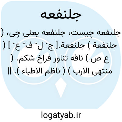 ( جلنفعة ) جلنفعة.[ ج َ ل َ ف َ ع َ ] ( ع ص ) ناقه تناور فراخ شکم. ( منتهی الارب ) ( ناظم الاطباء ). || ناقه کلانسال که او را اندک قوت باشد. ( منتهی الارب ) ( از اقرب الموارد ). || ناقه ای که بسیار چوبکهای مهار در بینی وی در آمده باشد. ( منتهی الارب ) ( ناظم الاطباء ).