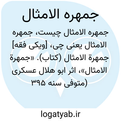 [ویکی نور] جمهرة الامثال، اثر ابوهلال عسکری (متوفی سنه 395ق)، به زبان عربی، در دو مجلد است و به جمع آوری مثل های اصیل عربی که در قالب شعر و اخبار غریب و زیبا از بزرگان به جای مانده، پرداخته است.