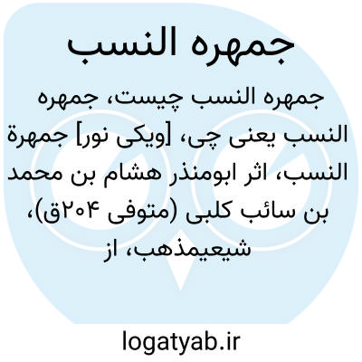 [ویکی نور] جمهرة النسب، اثر ابومنذر هشام بن محمد بن سائب کلبی (متوفی 204ق)، شیعی‎مذهب، از قدیمی‎ترین‎ کتاب‎های مفصل در دسترس پیرامون علم انساب می‎باشد که به زبان عربی نوشته شده و با تحقیق ناجی حسن عرضه شده است.