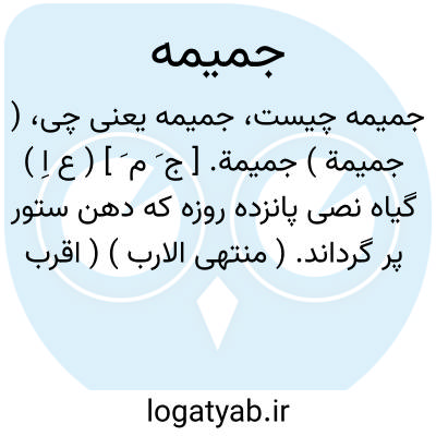 ( جمیمة ) جمیمة. [ ج َ م َ ] ( ع اِ ) گیاه نصی پانزده روزه که دهن ستور پر گرداند. ( منتهی الارب ) ( اقرب الموارد ).