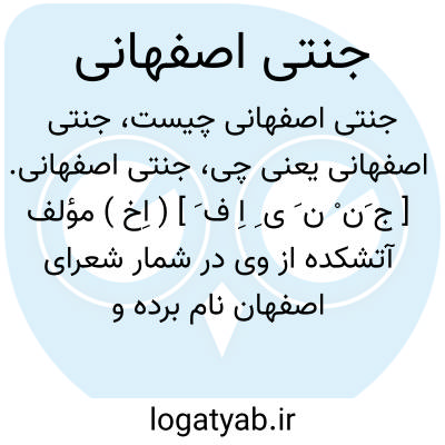 جنتی اصفهانی. [ ج َن ْ ن َ ی ِ اِ ف َ ] ( اِخ ) مؤلف آتشکده از وی در شمار شعرای اصفهان نام برده و گوید: اسمش زین الدین از قریه جز است، گویند که شعر بسیاری گفته، توفیق ترتیب نیافته، این قطعه از مثنوی شاپور و شهناز از او در اینجا نوشته شد: