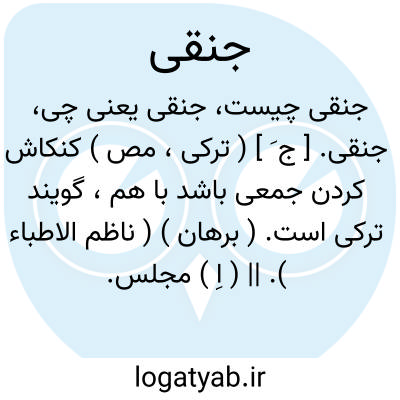 جنقی. [ ج َ ] ( ترکی، مص ) کنکاش کردن جمعی باشد با هم، گویند ترکی است. ( برهان ) ( ناظم الاطباء ). || ( اِ ) مجلس. انجمن. ( ناظم الاطباء ).