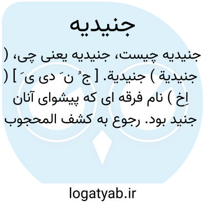 لغت نامه دهخدا ( جنیدیة ) جنیدیة. [ ج ُ ن َ دی ی َ ] ( اِخ ) نام فرقه ای که پیشوای آنان جنید بود. رجوع به کشف المحجوب هجویری شود.
