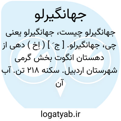 جهانگیرلو. [ ج َ ] ( اِخ ) دهی از دهستان انگوت بخش گرمی شهرستان اردبیل. سکنه 218 تن. آب آن از چشمه. محصول آن غلات و حبوبات.شغل اهالی زراعت. ( از فرهنگ جغرافیایی ایران ج 4 ).
