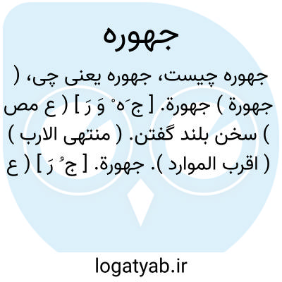 ( جهورة ) جهورة. [ ج َه ْ وَ رَ ] ( ع مص ) سخن بلند گفتن. ( منتهی الارب ) ( اقرب الموارد ).