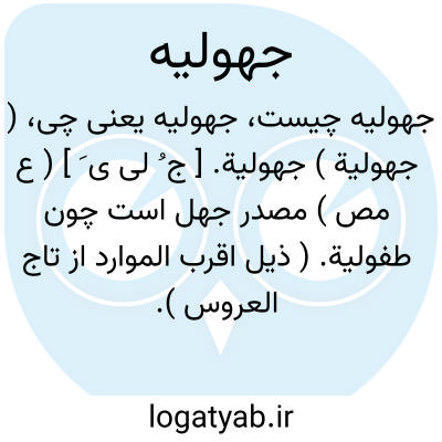 لغت نامه دهخدا ( جهولیة ) جهولیة. [ ج ُ لی ی َ ] ( ع مص ) مصدر جهل است چون طفولیة. ( ذیل اقرب الموارد از تاج العروس ).
