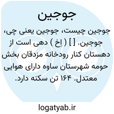 جوجین. [ ] ( اِخ ) دهی است از دهستان کنار رودخانه مزدقان بخش حومه شهرستان ساوه دارای هوایی معتدل. 164 تن سکنه دارد. آب آن از رودخانه و محصول آن غلات، حبوبات، بنشن، پنبه، انار، انجیر و شغل اهالی زراعت و گله داری است. مزرعه گوهرآباد و دیه جزو این ده است. این ده قشلاق چند خانوار از ایل شاهسون بغدادی است. ( از فرهنگ جغرافیایی ایران ج 1 ).