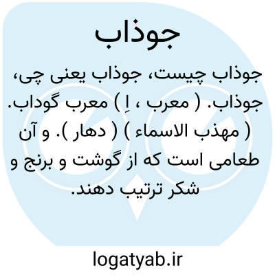 جوذاب. ( معرب، اِ ) معرب گوداب. ( مهذب الاسماء ) ( دهار ). و آن طعامی است که از گوشت و برنج و شکر ترتیب دهند. جوذابه. هرچه بپزند بی توابل. ( یادداشت بخط مرحوم دهخدا ). نشیل.
