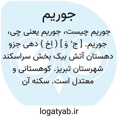 جوریم. [ ج ُ وَ ] ( اِخ ) دهی جزو دهستان آتش بیک بخش سراسکند شهرستان تبریز. کوهستانی و معتدل است. سکنه آن 271 تن. آب آن از چشمه و محصول آنجا غلات، پنبه و شغل اهالی زراعت و گله داری است. ( از فرهنگ جغرافیایی ایران ج 4 ).