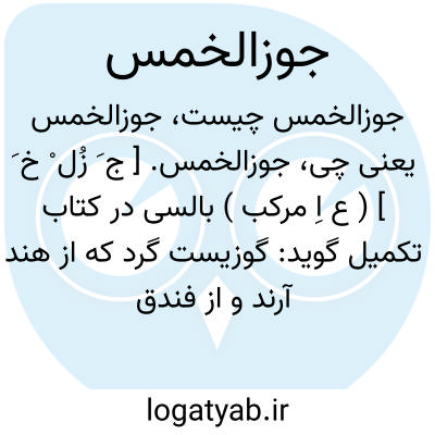 جوزالخمس. [ ج َ زُل ْ خ َ ] ( ع اِ مرکب ) بالسی در کتاب تکمیل گوید: گوزیست گرد که از هند آرند و از فندق سخت تر است سیاه با خالهای سپید و سطحی هموار و از درون به برز قرطم بری مانند باشد گرم و خشک است و درهمی از آن با آب گرم شکم براند و بلغم و سودا دفع کند. داود ضریر انطاکی گوید: از آن بدو جوزالخمس گویند که هر درختی بیش پنج میوه نیارد. و رجوع به تحفه حکیم مؤمن شود.