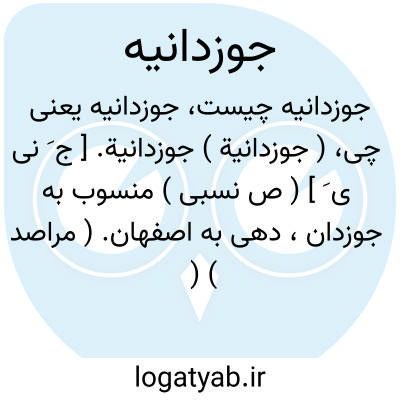 لغت نامه دهخدا ( جوزدانیة ) جوزدانیة. [ ج َ نی ی َ ] ( ص نسبی ) منسوب به جوزدان، دهی به اصفهان. ( مراصد ) ( معجم البلدان ).