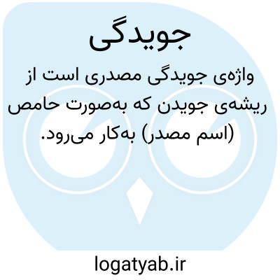 واژه‌ی جویدگی مصدری است از ریشه‌ی جویدن که به‌صورت حامص (اسم مصدر) به‌کار می‌رود. این واژه بر مفهوم عمل جویدن یا حالت ناشی از آن دلالت دارد و در متون و گفتار فارسی، بیشتر با کاربردهای فعل جویدن پیوند می‌خورد. در دستور زبان فارسی، جویدگی به‌عنوان یک اسم مصدر، بیانگر فرآیند یا نتیجه‌ی عمل جویدن است و می‌تواند در ترکیب‌های مختلف زبانی مورد استفاده قرار گیرد. برای شناخت دقیق‌تر معانی، کاربردها و مثال‌های مرتبط با این واژه، باید به مدخل جویدن در فرهنگ‌های معتبر زبان فارسی مراجعه نمود. بر اساس منابع لغوی، جویدن خود فعلی است که بر عمل آسیاب کردن غذا با دندان‌ها، تأمل فراوان در مطلبی یا حتی بیان مکرر و بی‌حاصل چیزی اطلاق می‌شود. بنابراین، جویدگی می‌تواند به‌طور مجازی بر حالت تکراری، فرساینده یا عمیقاً تأمل‌برانگیز نیز اشاره داشته باشد.