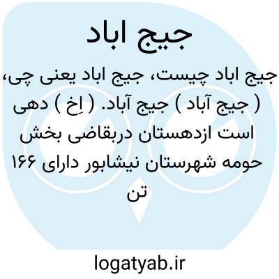 ( جیج آباد ) جیج آباد. ( اِخ ) دهی است ازدهستان دربقاضی بخش حومه شهرستان نیشابور دارای 166 تن سکنه. رجوع به فرهنگ جغرافیایی ایران ج 9 شود.