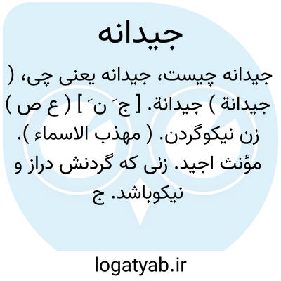 ( جیدانة ) جیدانة. [ ج َ ن َ ] ( ع ص ) زن نیکوگردن. ( مهذب الاسماء ). مؤنث اجید. زنی که گردنش دراز و نیکوباشد. ج، جود، جید. ( منتهی الارب ) ( اقرب الموارد ).