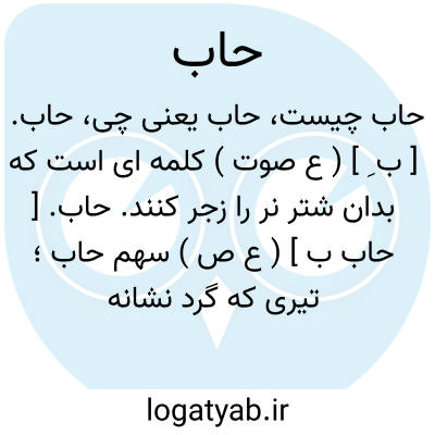 حاب. [ حاب ب ] ( ع ص ) سهم حاب؛ تیری که گرد نشانه افتد. ج، حَواب.