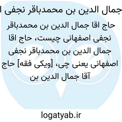 [ویکی فقه] حاج آقا جمال الدین بن محمدباقر نجفی اصفهانی. حاج آقاجمال اصفهانی، از علمای ایران در قرن چهاردهم هجری بود.