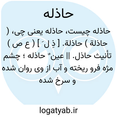 ( حاذلة ) حاذلة. [ ذِ ل َ ] ( ع ص ) تأنیث حاذل. || عین ٌ حاذله؛ چشم مژه فرو ریخته و آب از وی روان شده و سرخ شده و جای مژگان ورم کرده.