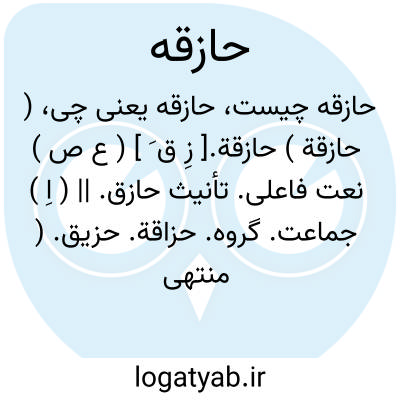 ( حازقة ) حازقة.[ زِ ق َ ] ( ع ص ) نعت فاعلی. تأنیث حازق. || ( اِ ) جماعت. گروه. حزاقة. حزیق. ( منتهی الارب ).