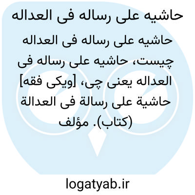 [ویکی نور] حاشیه علی رساله فی العداله (مامقانی). حاشیة علی رسالة فی العدالة تألیف عبدالله بن محمد حسن مامقانی وی از علمای علم رجال و از فقهای شیعه در قرن چهاردهم و متوفای سال 1351 هجری قمری می باشد.