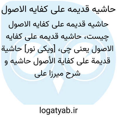 [ویکی نور] حاشیة قدیمة علی کفایة الأصول حاشیه‎ و شرح میرزا علی ایروانی (متوفی 1354ق) بر کتاب ارزشمند «کفایة الأصول» آخوند خراسانی (متوفی 1329ق) است. این نسخه خطی در 134 صفحه به زبان عربی در شرح و توضیح مطالب علمی و عبارات پیچیده کفایه به رشته تحریر درآمده است.