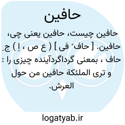 حافین. [ حاف ْ فی ] ( ع ص، اِ ) ج ِ حاف، بمعنی گرداگردآینده چیزی را: و تری الملئکة حافین من حول العرش. ( قرآن 75/39 ).