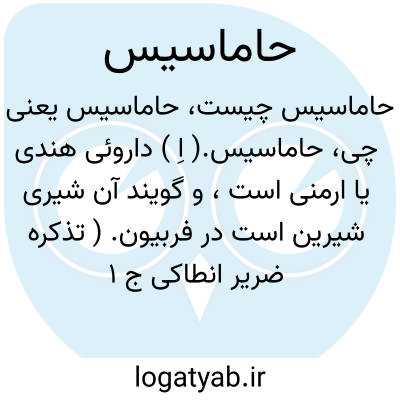 حاماسیس.( اِ ) داروئی هندی یا ارمنی است، و گویند آن شیری شیرین است در فربیون. ( تذکره ضریر انطاکی ج 1 ص 116 ).