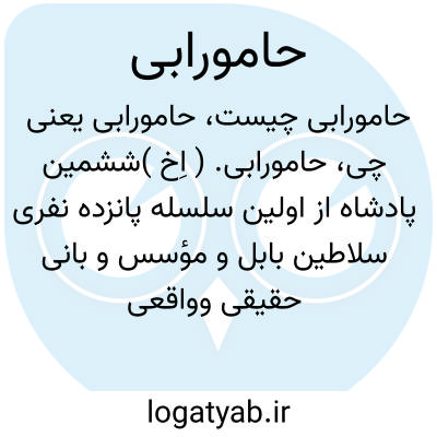 حامورابی. ( اِخ )ششمین پادشاه از اولین سلسله پانزده نفری سلاطین بابل و مؤسس و بانی حقیقی وواقعی مملکت بابل. قانون حامورابی قدیم ترین قوانینی است که تا امروز بدست است. سلطنت وی در حدود 2003-1961 ق.م. وی بیست سال ضدّ ریم سن پادشاه عیلام و لارسا پادشاه فرات سفلی جنگیده است. او جهانداری بزرگ است که قلمرو خویش را با تشکیلات منظم و قوانین متحد ساخت و معتقدات حکمی را با حکومت سیاسی جدید مورد قبول اتباع خود قرار داد، و به تجارت خارجی نیز وسعت بخشید. سلسله وی کمی بعد از او نابود شد، اما آثار وی بجای ماند، و بابل در نزد شرقیان تا زمان سلوکیان شهری قابل توجه بشمار میرفت.