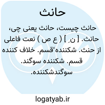 حانث. [ ن ِ ] ( ع ص ) نعت فاعلی از حنث. شکننده ٔقسم. خلاف کننده قسم. شکننده سوگند. سوگندشکننده. سوگندشکن. || زنهارخوار. || خلف وعده کننده. خلف عهد کننده. || مائل شده ازحق به باطل. || مائل شده از باطل به حق.