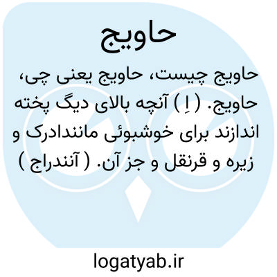 حاویج. ( اِ ) آنچه بالای دیگ پخته اندازند برای خوشبوئی مانندادرک و زیره و قرنقل و جز آن. ( آنندراج ). حویج.